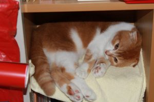 昼寝は本棚の中だニャー         出勤6日目 行動範囲広がる